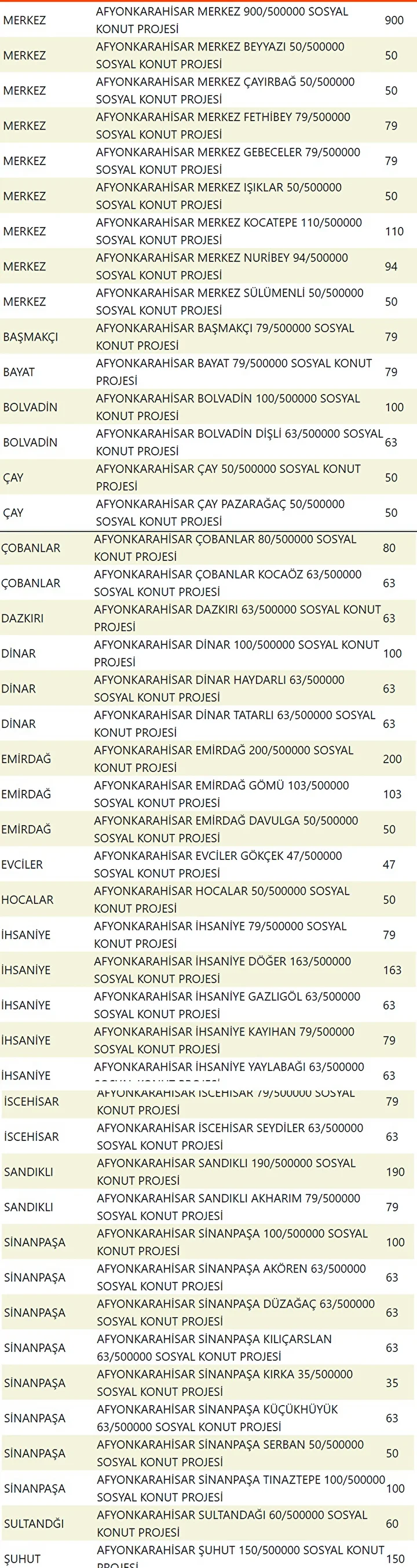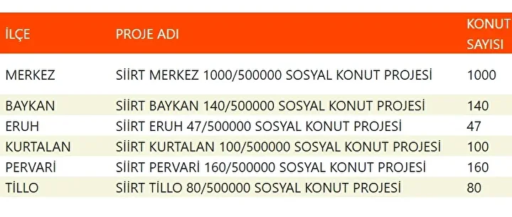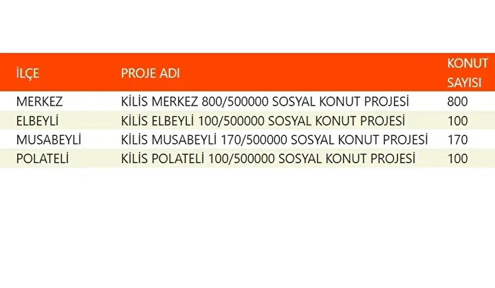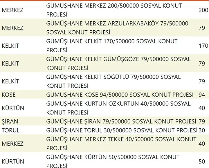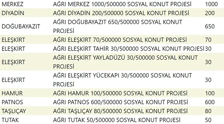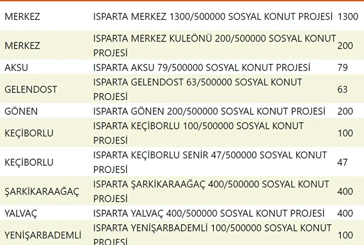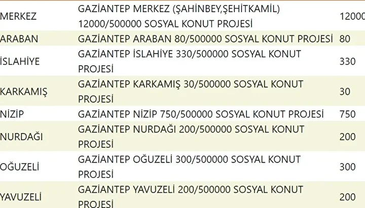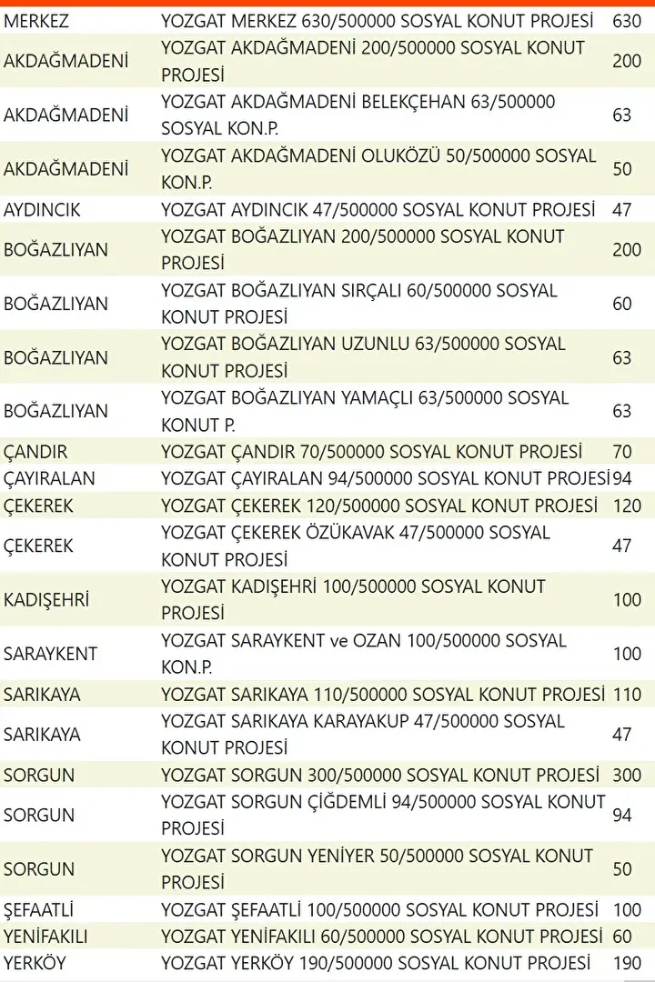 Projede en fazla konutun yapılacağı iller İstanbul, Ankara, İzmir, Bursa ve Konya olarak kayıtlara geçti. Bu doğrultuda 81 ilde 500 bin konutun yükseleceği ilçeler de netleşti.