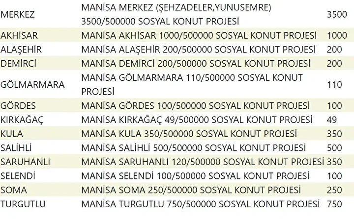 İzmir’de ise 21 bin 20 konutun yapılacağı ilçeler, Menemen, Güzelbahçe, Urla, Aliağa, Bergama, Dikili, Foça, Karaburun, Kemalpaşa, Seferihisar ve Selçuk olarak belirlendi.