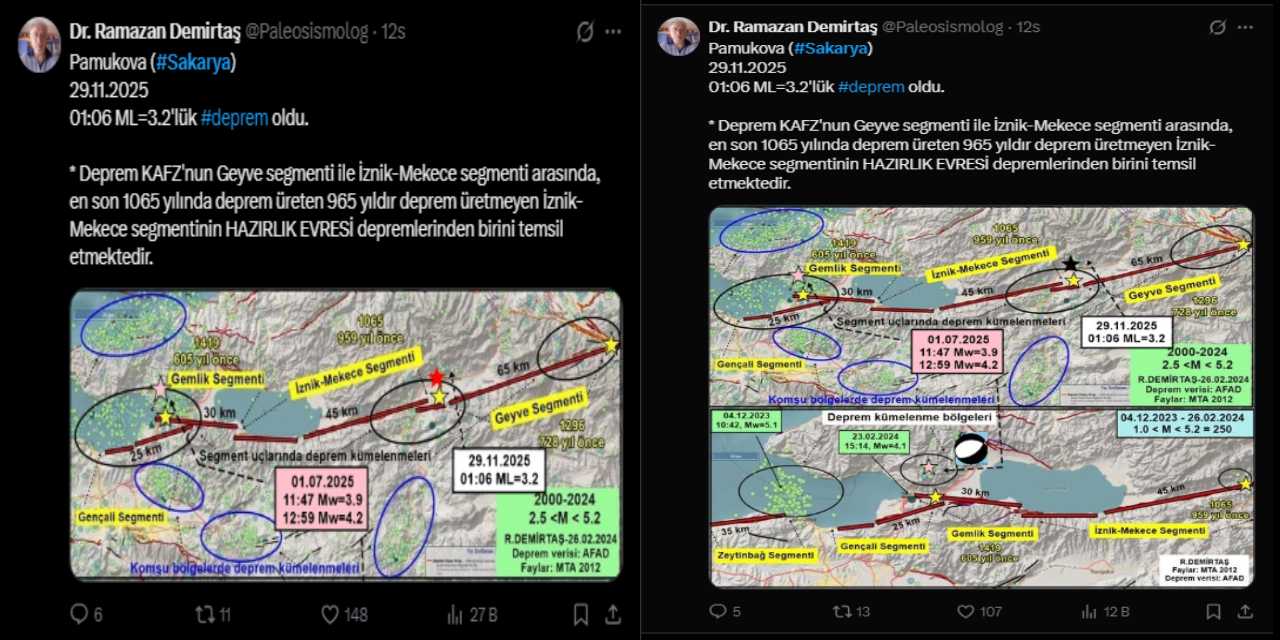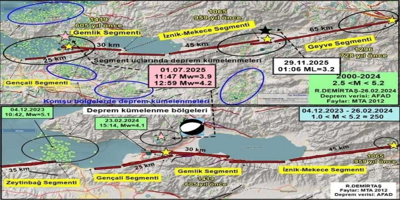 “Deprem KAFZ’nun Geyve segmenti ile İznik-Mekece segmenti arasında, en son 1065 yılında deprem üreten 965 yıldır deprem üretmeyen İznik-Mekece segmentinin HAZIRLIK EVRESİ depremlerinden birini temsil etmektedir.”